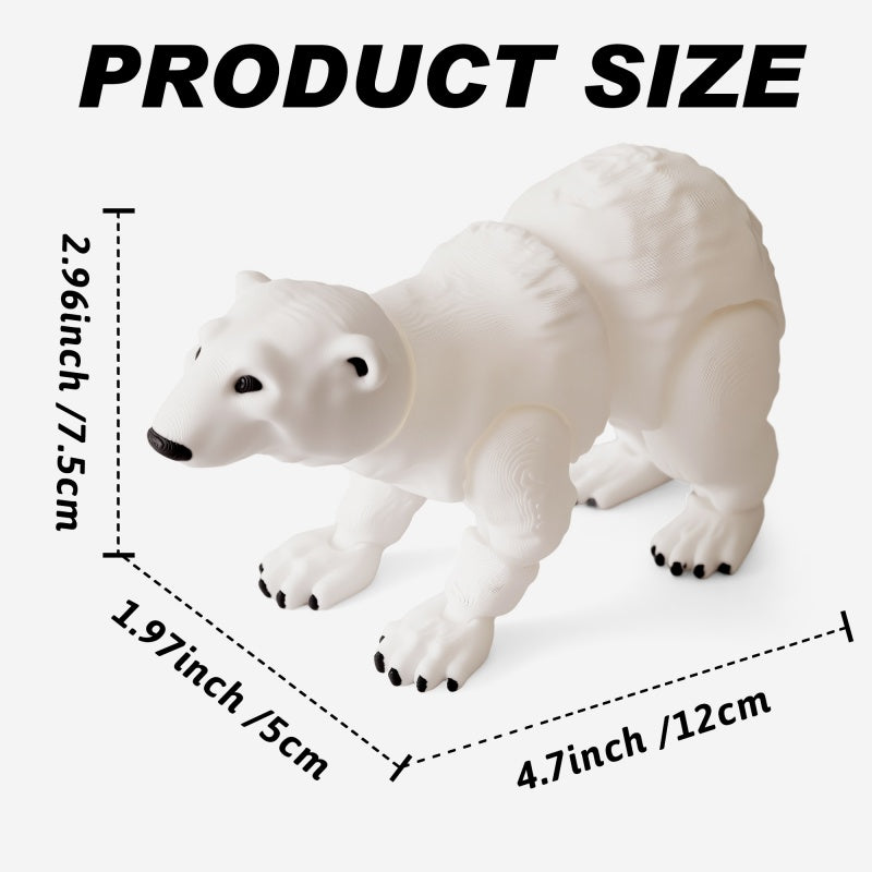 Yipintang 3D Printed Creature Flexible Animal 4.7 Inches Polar Bear