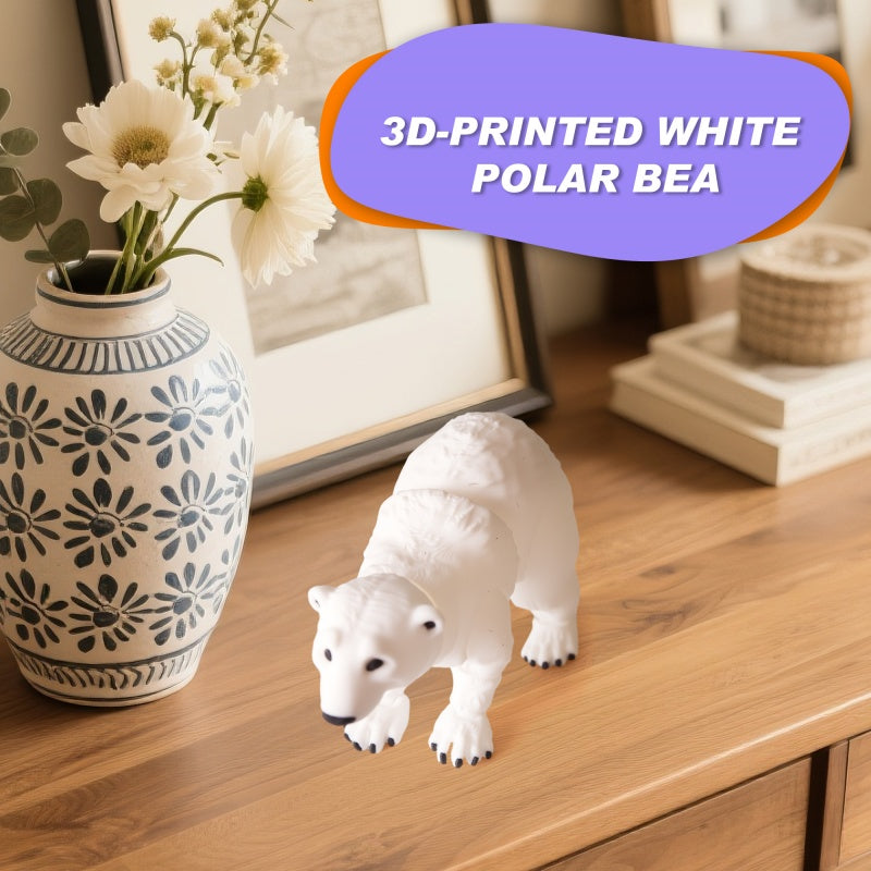 Precision 3D Printing with Fine Detail: Crafted using high-resolution 3D printing technology, this polar bear figure showcases clean lines, smooth contours, and well-defined surface textures, reflecting exceptional manufacturing quality and attention to detail.